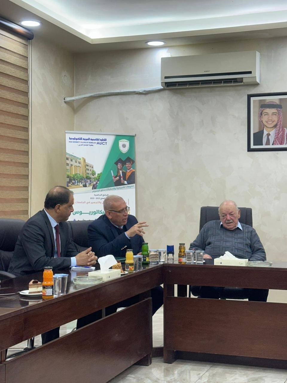 وحضر عن جانب الكلية الجامعية العربية كلٌّ من عضو هيئة المديرين المهندس هشام الخطيب، ونائب العميد الدكتور حسن قاسم، ورئيس مركز الاستشارات والتدريب الدكتورة زكية عريقات.